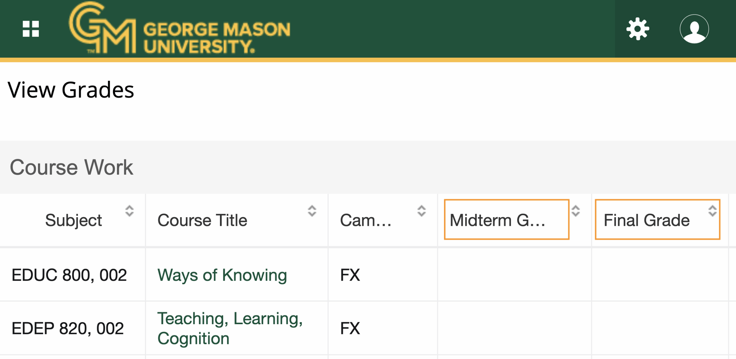 Midterm and Final Grades are available based on the course’s part of term. See the Academic Calendar for specific term dates.
